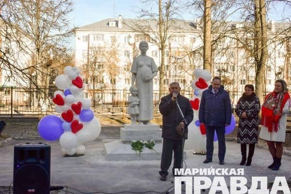 Сегодня, 14 ноября, в Йошкар-Оле во дворе Перинатального центра состоялось торжественное открытие скульптурной композиции «Святое материнство». Памятник беременной женщине, которая гладит по голове малыша, расположился напротив центрального входа в столичный роддом.