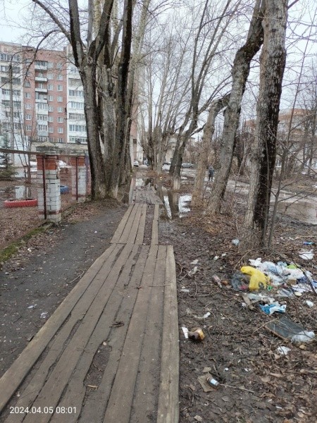 Также они посетовали на то, что передвигаться приходится по скользким досочкам, чтобы не увязнуть в грязи. Да и дощатый тротуар над лужами уже ненадежен, так как он старый и разбитый. К сообщению йошкаролинцы приложили фото той самой пешеходной дорожки.
