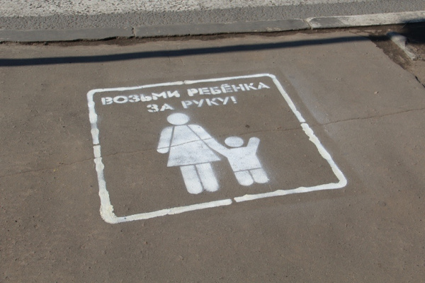Граффити-надписи «Посмотри налево, посмотри направо», «Возьми ребенка за руку» и «Убедись в своей безопасности» красуются с сегодняшнего дня в столице Марий Эл на тротуарах перед пешеходными переходами.
