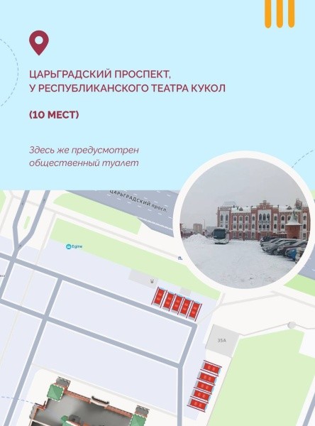 Царьградский проспект (у Республиканского театра кукол) – 10 мест. В этом месте предусмотрен общественный туалет.