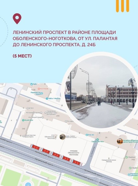 Ленинский проспект в районе площади Оболенского-Ноготкова, от ул. Палантая до Ленинского проспекта, д. 24б – 5 мест.