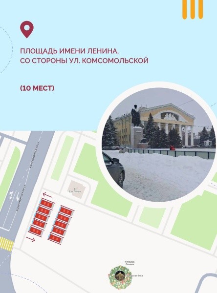Площадь имени Ленина (со стороны ул. Комсомольской) – 10 мест.