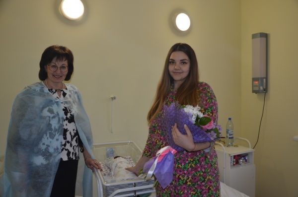 По поручению главы Марий Эл маму ребёнка Веронику Старыгину от имени Правительства республики поздравили министр социального развития Ольга Федорова и главный врач Перинатального центра Николай Сушенцов.