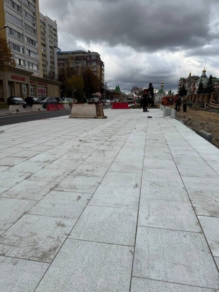 «Здесь обустраивается покрытие под стать историческому центру города. Каждая гранитная плита весит около 25-30 килограммов. Работа по укладке трудоемкая, но результат того стоит, будет красиво и долговечно. Появятся также скамейки для отдыха, а весной в вазонах будут расти цветы», - сообщил врио мэра Йошкар-Олы Антон Трудинов на своей странице в социальной сети.