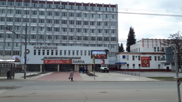 На центральной проходной Марийского машиностроительного завода на большом экране транслируются портреты ветеранов предприятия, воевавших в годы войны и трудившихся в тылу.
