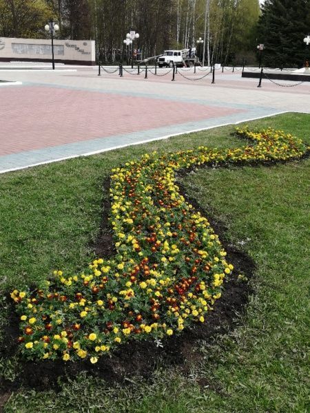 Идут работы по украшению города и на бульваре Победы. Здесь высаживаются петунии и бархатцы, а на одной из клумб скоро зацветут георгины «Веселые ребята».
