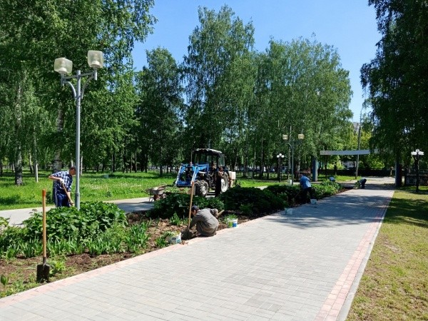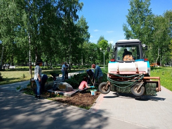На благоустройство парка Победы вышел коллектив работников Дворца культуры им. В.И. Ленина, благодаря которым одно из любимых у горожан мест отдыха заиграло яркими красками.