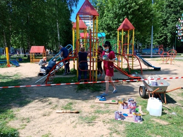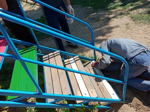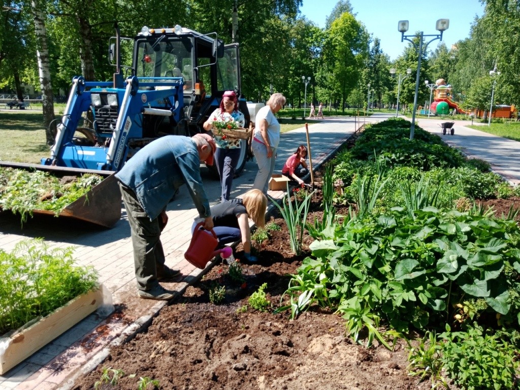 Участники субботника разделились: кто-то отправился ремонтировать и красить объекты на детской площадке, кто-то – обустраивать пышные клумбы, где будут цвести петунии, сильвии, бархатцы и гвоздики.