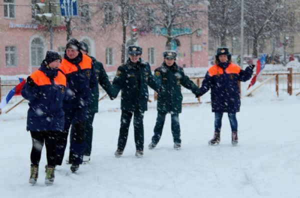Сотрудники МЧС вышли на лед главного катка Йошкар-Олы, чтобы своим примером показать, как должен проходить безопасный отдых.