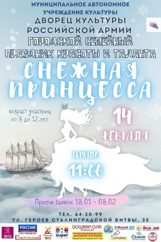 «Снежная принцесса 2021» − так называется городской семейный праздник, который пройдет во Дворце культуры Российской Армии 14 февраля и соберет дружные семьи марийской столицы.