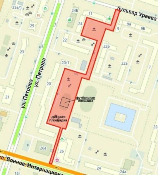 · благоустройство территории на участке от дома 26а на улице Воинов-Интернационалистов до дома 9а на бульваре Ураева;