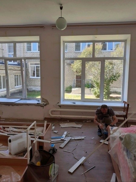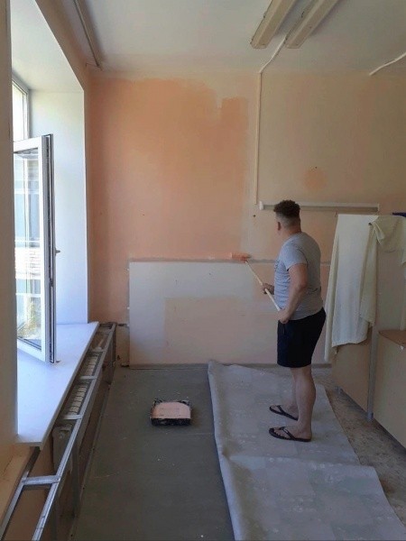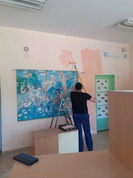 Идет ремонт и в детском саду "Подсолнушек". Здесь частично отремонтируют групповые и уличные веранды и постройки, идет обновление отделки в группе, куда совсем скоро придут малыши 2-3 лет. Чтобы им было комфортнее, в отделке стен используются самые теплые и приятные глазу цвета.