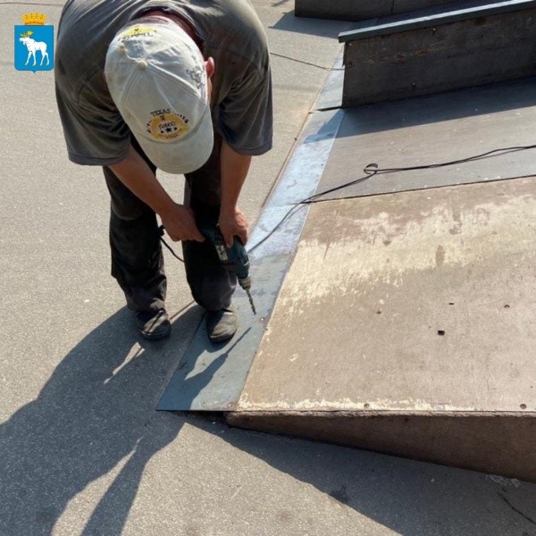 Старая фанера также была демонтирована, установлены новые листы со специальным покрытием финского производства. На сегодняшний день отремонтированы модули «Мини-рампа», «Квотер/«Бенк с кербом».