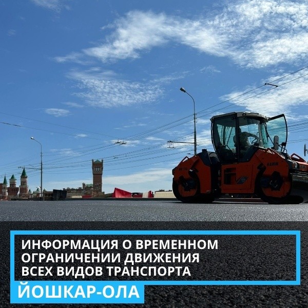 Также, с 20 по 24 августа запретят движение всех транспортных средств по тому же маршруту, сообщает администрация Йошкар-Олы. Перекрытие связано с с проведением работ по переустройству контактной сети троллейбуса.