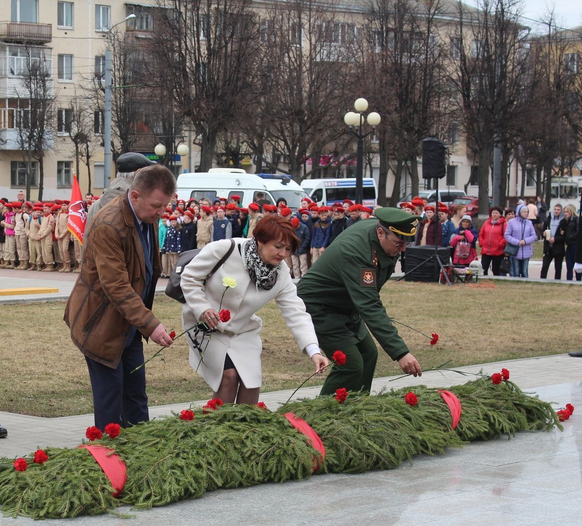 Под звуки всем известной песни Марка Бернеса «Журавли» к монументу Воинской Славы и мемориальному комплексу Вечный Огонь Славы участники акции «Вахта Памяти» возложили цветы и еловые гирлянды.