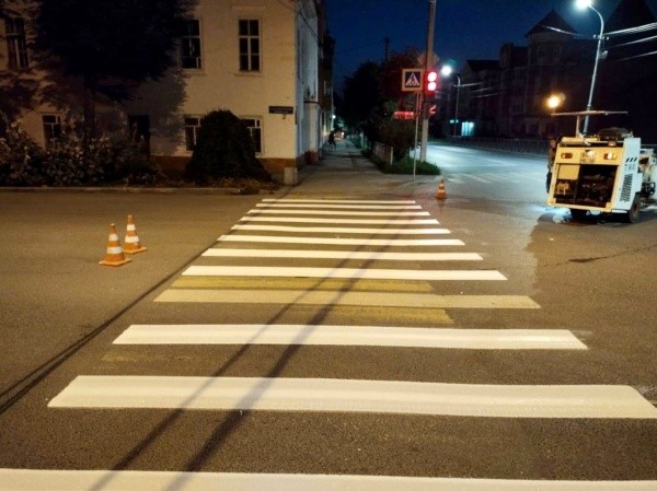 Для разметки дорожного полотна рабочие используют высокопрочный материал – термопластик. А для удобства йошкаролинцев бригады МУП «Город» трудятся в основном по ночам.