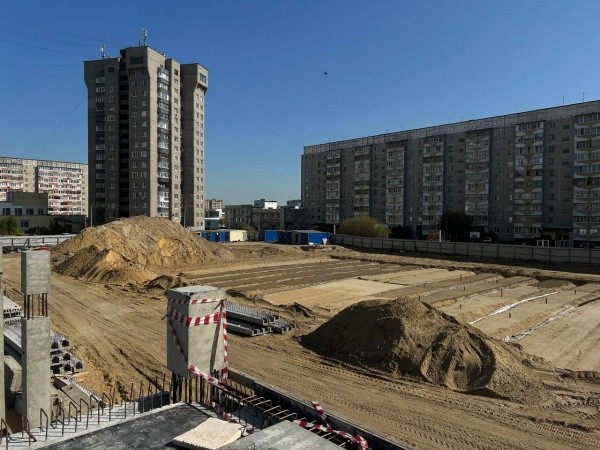 Параллельно со строительством школы идет устройство спортивной площадки: проложили дренаж, после чего рабочие засыпят его песчано-гравийной смесью и двумя слоями щебенки. Последним этапом станет укладка специального мягкого покрытия для футбольного поля.