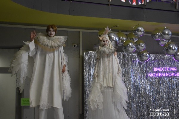 Масштабы проделанной работы видны уже с улицы: изменился фасад здания, его украсили неоновые линии триколора, стала светиться вывеска «Дворец молодежи». После фееричного в прямом смысле слова открытия те, ради кого и задумывались перемены – юные активисты республики – собрались в обновленном холле. И снова их ждал сюрприз – огромные ростовые куклы на ходулях, с которыми тут же все начали фотографироваться. Фотозон, к слову, было несколько, с надписями и без: «Добро» со стороны кабинетов, сияющая «Вместе мы можем все», разрисованная и расписанная стена, где каждый мог оставить свой креативный вариант своего «Тут был я».