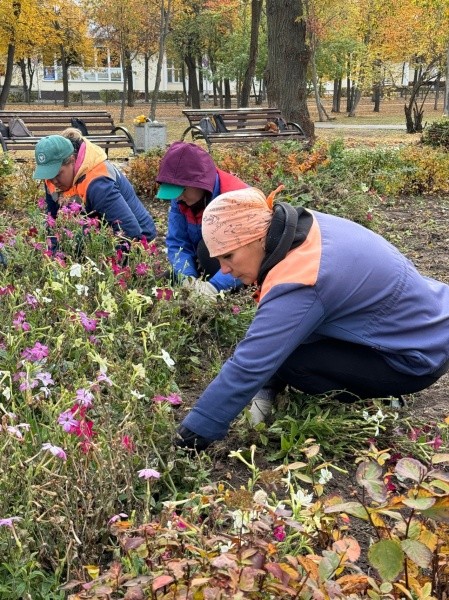 Клумбы города начали активно подготавливать к холодам. С засохших цветов работники собирают семена, а сразу после таких манипуляций начнется подготовка почвы к следующему сезону.