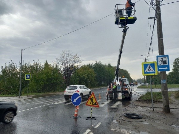 Новые светильники сегодня, 19 сентября, устанавливают на пешеходном переходе при выезде на Сернурский тракт.
