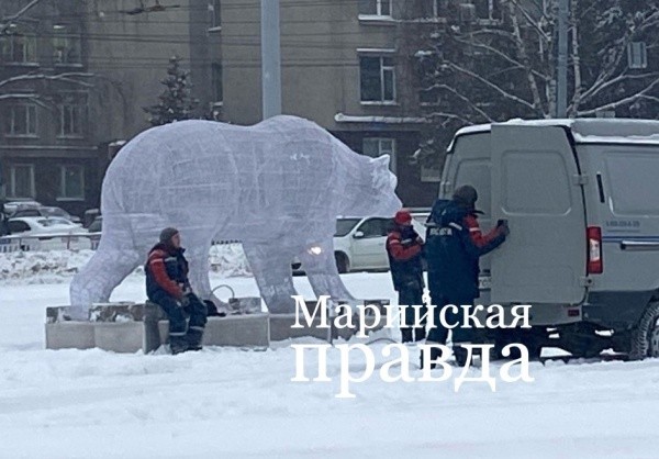 На кольцевой развязке улиц Карла Маркса и Панфилова в Йошкар-Оле сегодня появился белый мишка.