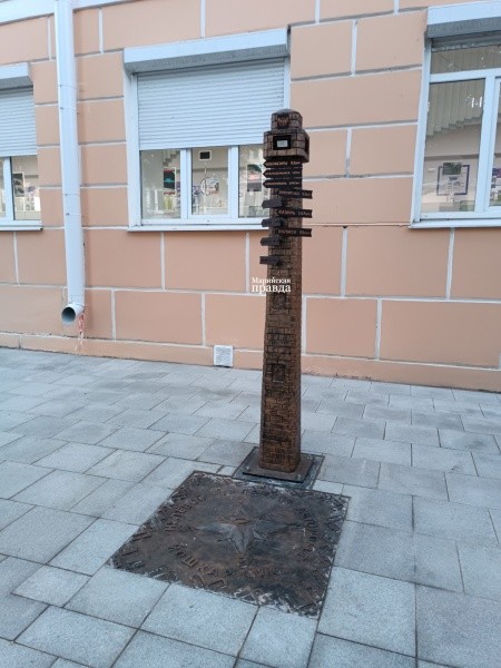 Около Главпочтамта в Йошкар-Оле специалисты установили знак «Нулевой километр автодорог».