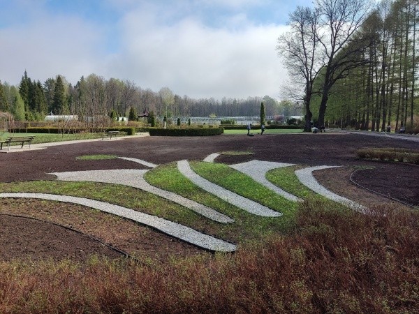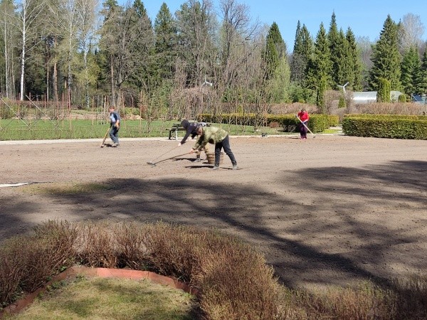 Работы в «Партере с элементами топиарного искусства» возобновились этой весной. На территории тщательно подготовили почву - максимально выровняли поверхность. Сотрудникам учреждения помогали студенты Высшего колледжа «Политехник».