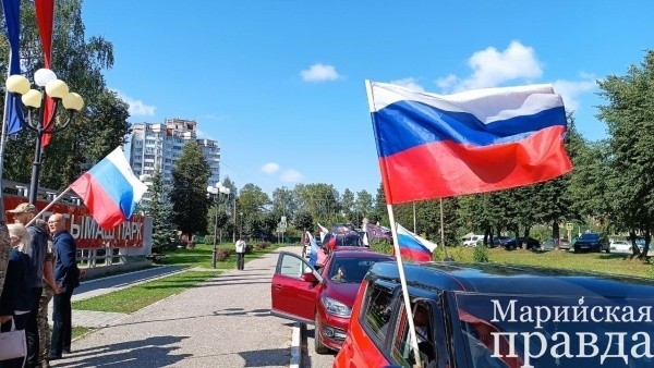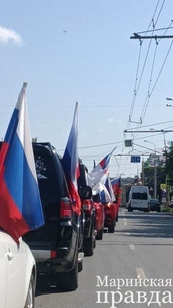 Сегодня, в День Государственного флага Российской Федерации, по улицам Йошкар-Олы проехалась колонна машин с развевающимся триколором.
