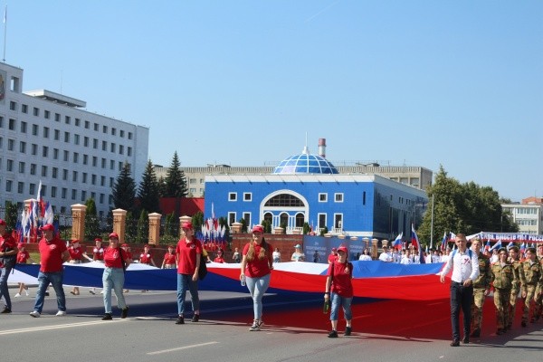 По улицам Йошкар-Олы пронесли самый большой в Марий Эл российский триколор размером 20х13 метров. Также участники процессии несли и обычные флаги. В колонне прошли школьники, студенты, кадеты, юнармейцы, представители городских организаций и предприятий и общественники.