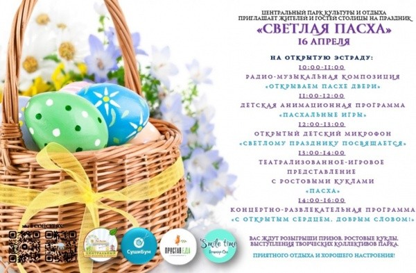 Праздничная программа "Светлая Пасха" состоится в ЦПКиО в ближайшее воскресенье,16 апреля, на открытой эстраде.