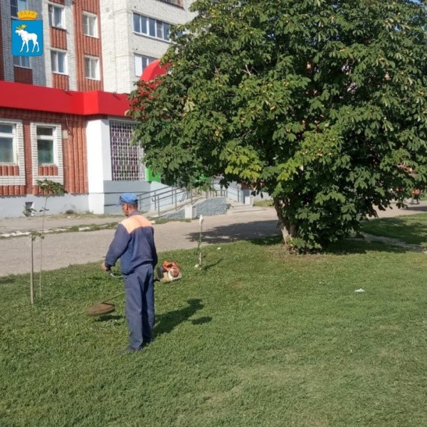 Также на газонах косят траву и подстригают кусты. Работы проведены на улицах Васильева, Я. Крастыня, Строителей и Кремлевской подстригают кусты.