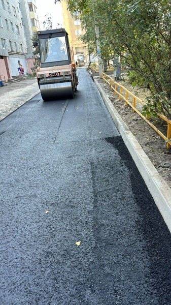 После встречи общественников с жителями дома №164 на улице Первомайской в Йошкар-Оле двор продолжили благоустраивать. Дорожники приступили к асфальтированию проезда.