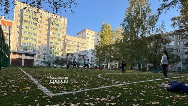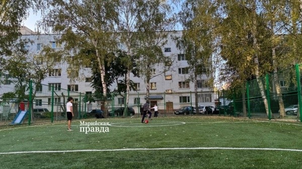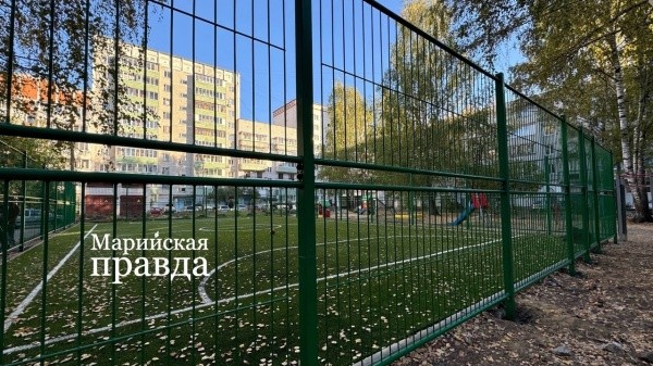 В Йошкар-Оле завершается строительство нового футбольного поля, которое расположено вблизи дома по адресу Первомайский переулок, д. 5. Эта площадка по планам должна была быть готова еще летом, но, к сожалению, доделывают ее только сейчас. В течение этой недели работники уложили на поле искусственный газон, нанесли на нем разметки, и на днях был установлен высокий забор.
