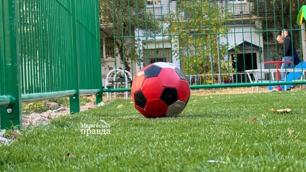 Футбольная площадка во дворе одной из многоэтажек в Первомайском переулке практически готова.