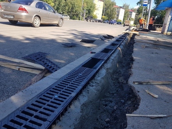 Сейчас бригады подрядной организации уже заменили здесь бордюры, сняли изношенное покрытие и уложили новый асфальтобетон. Кроме того, на данной транспортной артерии обустроили систему поверхностного водоотвода. Так что ливни и лужи водителям будут не страшны.