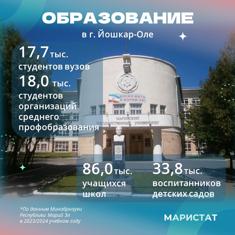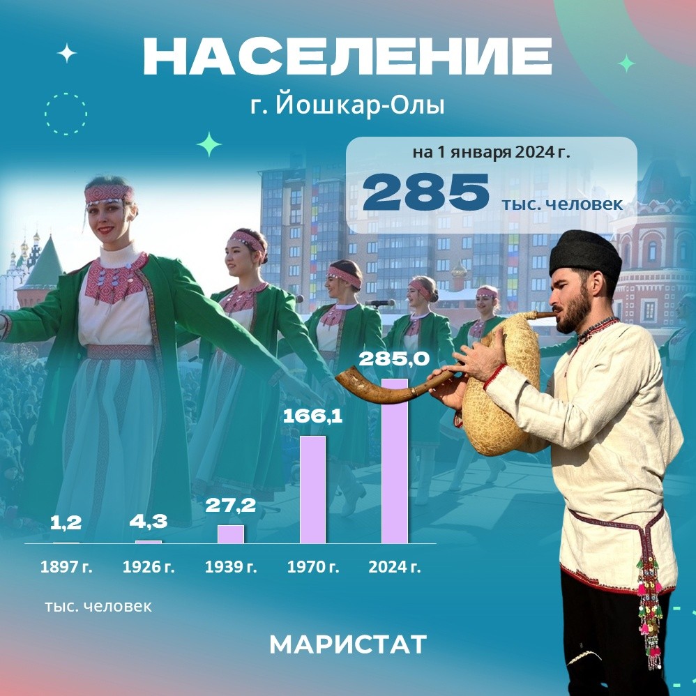 Маристат подготовил список фактов о Йошкар-Оле. Например, знаете ли вы, что, по данным на январь 2024 года, в столице Марий Эл проживают 285 тысяч человек?