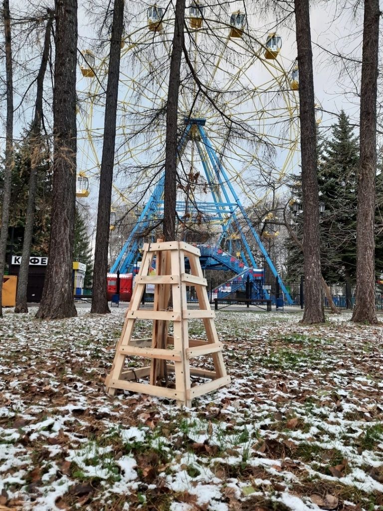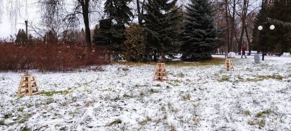 Одним из этапов подготовки саженцев деревьев к зиме стала установка деревянных щитков. Благодаря им растения будут защищены от механических повреждений в холода, а еще они кажутся заметнее и люди будут обходить хрупкие кустики, чтобы не сломать. Деревянные навесы соорудили сотрудники парка, позаботившись о сохранении зеленого фонда в центре марийской столицы.