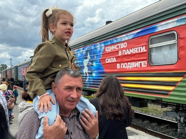Сегодня, 19 июня, в Йошкар-Олу прибыл агитпоезд «Единство в памяти. Сила в подвиге!». Горожане встречали его радостными восклицаниями и аплодисментами.