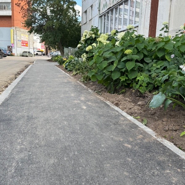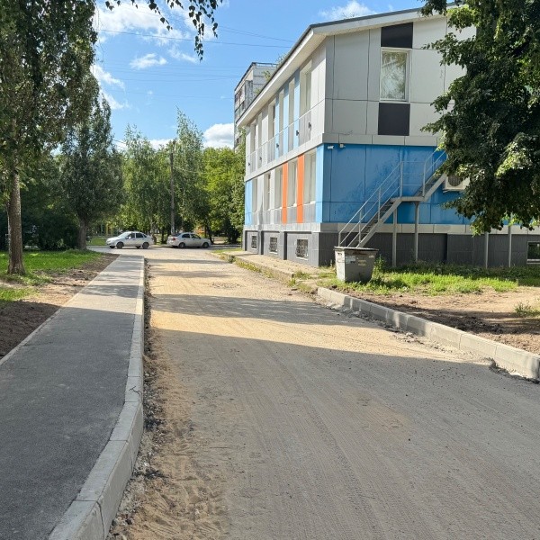 У дома №18а на Ленинском проспекте рабочие собираются положить новый асфальт на тротуары, в том числе, во дворе, ведущем к детскому саду №39 «Веснушка». Недавно там отремонтировали пешеходные дорожки к улице Эшкинина и привели в порядок смотровые колодцы.