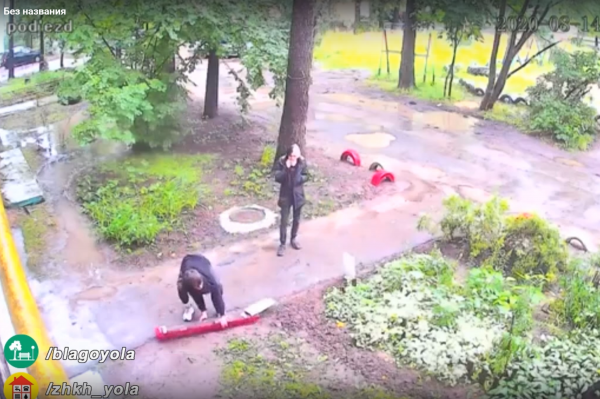 Видео размещено в группе «Благоустройство Йошкар-Олы» «ВКонтакте». На записи камеры видеонаблюдения видно, как молодой человек во дворе одного из домов выворачивает скамейку «с мясом», ломает ножки, бросает скамью в лужи на проезжую часть двора и топчет ее. Второй молодой человек за этим наблюдает.