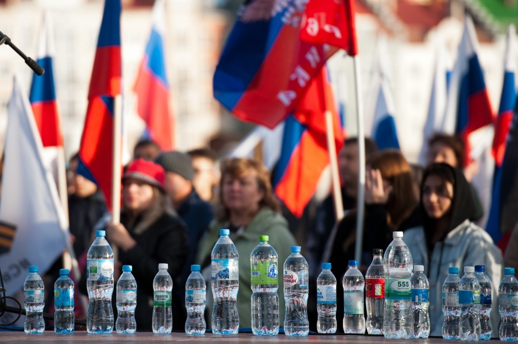 В тот же вечер участники концерта-митинга почтили минутой молчания память погибших при захвате заложников в Беслане в 2004 году, оставив у сцены бутылки с водой – символ акции, бессловесно напоминающий о детях, которых нападавшие морили жаждой и голодом.