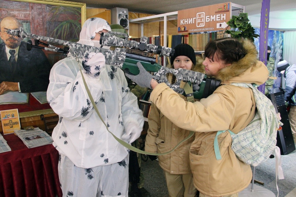 На выставочном стенде ведомства был представлен внушительный арсенал стрелкового оружия, пожалуй, самый разнообразный. Молодые люди, под чутким руководством сотрудников, могли ознакомиться с ассортиментом от компактных вариантов вооружения до тяжелого ручного пулемета. Павел Пасынков рассказал гостям об устройстве автоматического пистолета, его основных характеристиках и подчеркнул важность бережного и уважительного отношения к оружию. Особый интерес у ребят вызвала внушительная снайперская винтовка, один только оптический прицел которой весит порядка 1 килограмма.