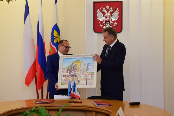 Главы муниципалитетов обменялись памятными подарками. После того, как Соглашение было подписано, Виктор Агеев пригласил делегатов на ознакомительную экскурсию по историческому центру Симферополя.