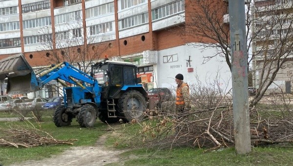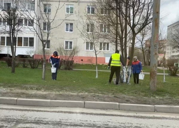 Сегодня проводится санитарная обрезка и побелка древесно-кустарниковой растительности на улицах Петрова,  Кирова и Комсомольской.