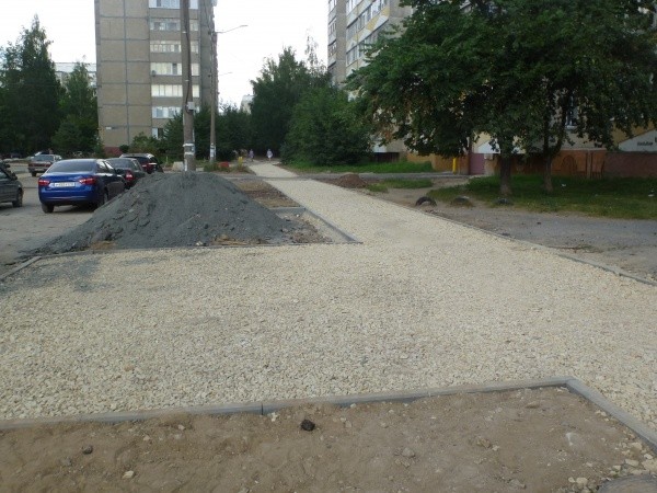 Где требуется, асфальтируем и тротуары. Силами управляющих компаний приводятся в порядок фасады домов, а также беседки, скамейки и другие малые архитектурные формы. Кроме того, путем подсыпки гранулята делаем парковки, обустраиваем газоны, чтобы двор зеленел.