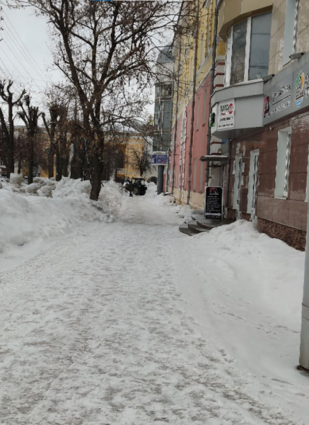Жительница Йошкар-Олы обратилась в сообщество администрации города с просьбой убрать лёд на тротуаре по улице Палантая.