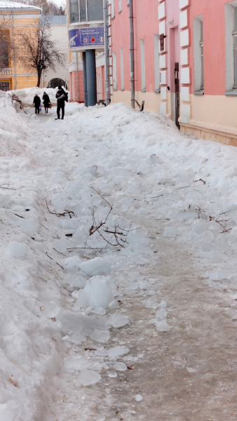 Сообщение горожанки быстро приняли в работу. В короткие сроки коммунальщики убрали глыбы льда.