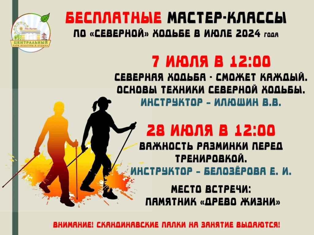 В Центральном парке культуры и отдыха Йошкар-Олы сообщили о графике тренировок по северной ходьбе в июле.
