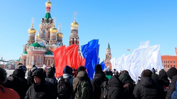 Молодые йошкаролинцы приняли участие во флешмобе «Крымский мост». Акция была направлена на поддержку жителей Крыма и Донбасса.