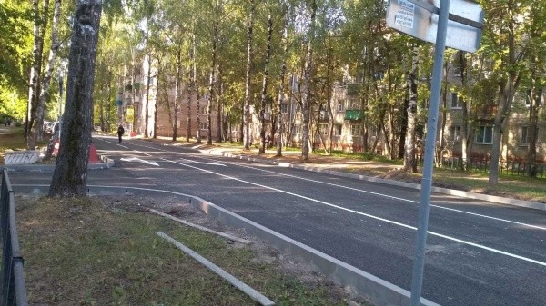 На дороге уложен новый асфальт, нанесена свежая разметка, установлены бордюры.
